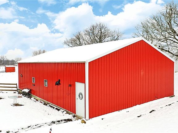 Calling all horse property buyers!!! This home is ready to move them right in! 3 acres of land with a 2 acre fenced pasture area. Also built in 2011, a 48x36 pole building with electric, with 6 horse stalls, loft for hay storage and tact area. There is also a 2 car garage with lean to storage area. Inside this cute bungalow home, you will find a mud room leading to a spacious eat in kitchen with updated cabinetry, hardware and full appliance package. First floor bedroom next to the updated full bath and living room complete the first floor. Upstairs is another very spacious bedroom. Heat pump and ac added in 2011. Fresh coat of neutral paint throughout! Dry basement, great for storage!