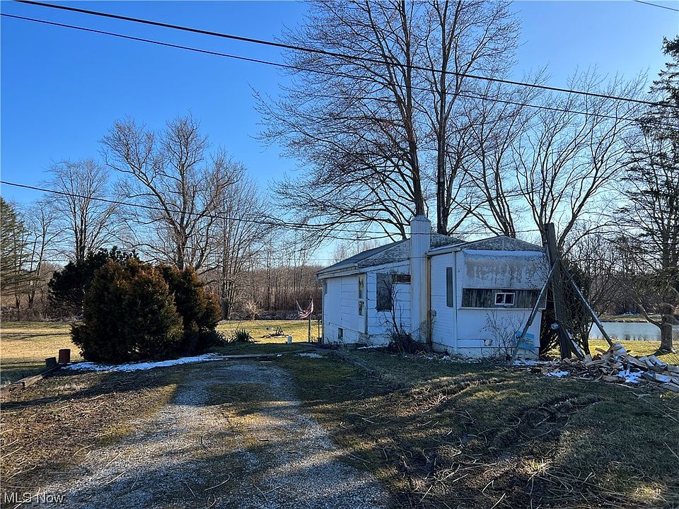 Value is in the land. 2.5-acres with 417' paved road frontage. Pond with water system (jet pump and expansion tank missing) Very old mobile home with add-ons and full basement. Home has one baseboard heater. Selling in as-is condition. Buckeye schools.