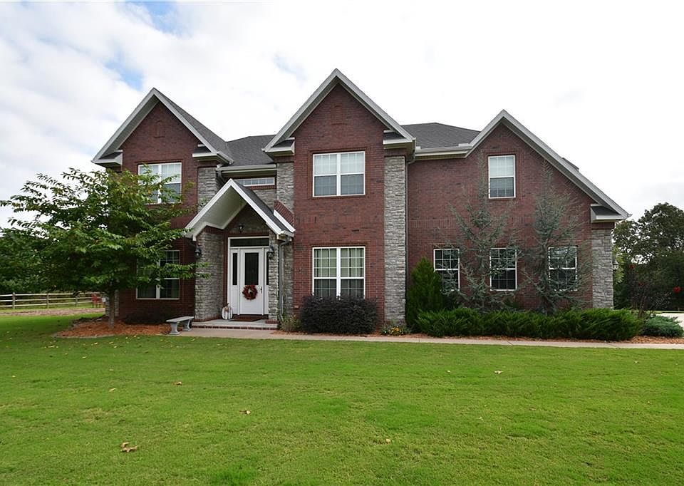 PERFECT FAMILY HOME! Beautiful home offers 5 bedrooms, 2.5 bathrooms nestled on over an acre of land! Gorgeous views of preserved, undeveloped countryside land, including "The Big Red Barn". Home has been recently updated with new paint and carpet. Splendid upgrades include extensive crown molding, tray ceilings and built-ins. Lovely eat-in kitchen provides large pantry, stainless steel appliances, center island granite countertops and formal dining. Plenty of room throughout the home with living room downstairs and a large bonus room upstairs. 5th bedroom downstairs can be used as an office with french doors and also provides a safe room. Amazing backyard with large mature trees. Enjoy the covered patio while children play on brand new playset. Upcoming nearby road improvements including sidewalk will allow you to walk your children to Holcomb & Holt schools. Great location close to everything, with easy access to I-49. Bring the family to see this one today!!!