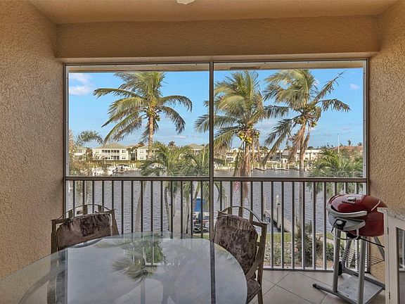 BEAUTIFUL TOP FLOOR WATERFRONT FULLY FURNISHED CONDO WITH 2 bedrooms, 2 bathrooms +den & DEEDED GARAGE awaits new owners! This gorgeous condo has a new roof, is part of an excellent HOA with healthy reserves per sellers and is in a fantastic location in Punta Gorda Isles. Up the stairs and inside, enjoy a great design, with a spacious foyer open to the large kitchen & dining rooms, the living room, and a wall of sliders to the lanai with beautiful water views! Back at the entry, a spacious laundry room has extra storage and has a new washer and hot water heater. The front guest bedroom is spacious and nearby the large guest bathroom. The massive kitchen is great for cooking meals and entertaining, as the breakfast bar adds extra seating but also is open to the rest of the living areas. A great flex space is the den with French doors off of the living room that can easily be a 3rd bedroom. The primary suite is tranquil and large, with dual walk-in closets, and an en-suite bathroom with great extra cabinet and counter space and an updated shower. On the lanai, enjoy boats and sunrises over the large sailboat turning basin! Some docks may be available for rent. The large heated pool/spa is ideal and private in the back of the building, with great space to BBQ and enjoy the sunshine. Don't forget the extra BONUS of having your own garage for storage and vehicles, along with guest parking! This condo is nearby to all things Punta Gorda including great restaurants, shopping, golfing, boating, parks, and more! Schedule your showing today and BE SURE TO CLICK THE FULL VIRTUAL TOUR LINKS FOR DETAILS!