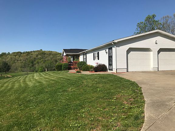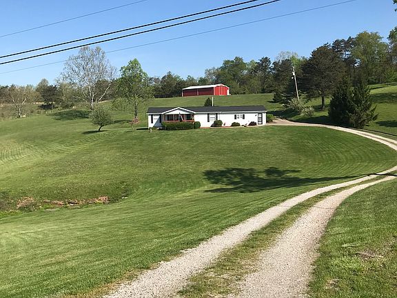 This 2 bedroom 2 full bath manufactured home has been updated with numerous improvements during the past 18 mos. It is better than new. Home has vaulted ceilings and great room has gas fireplace with oak mantel. All main living areas has new 100% waterproof Pewter Oak Outlast Pergo with a 25 year warranty and other improvements include all new stainless appliances, new backsplash, all new paint throughout, nice oak cabinets, new custom wainscoting in great room and new baseboard. White 6-panel doors add to the bright cheery setting. Bedrooms have new carpet. Master has a private master bath and walk in closet. Home has 200 amp electric and new roof. The attached oversized garage is 27x28. There is a 30x50 pole barn with a new 6" thick concrete floor that sits behind the house and a 90x14 concrete pad at the beginning of drive for an RV or another storage building. New a/c unit 2015. If you want to live in the country with the beautiful scenery and space but be less than 10 minutes to the interstate at Rt 50, you need to tour this immaculate property. There is room to grow with the beautiful 3.27 acres. Public water and sewer. Central heat and a/c.