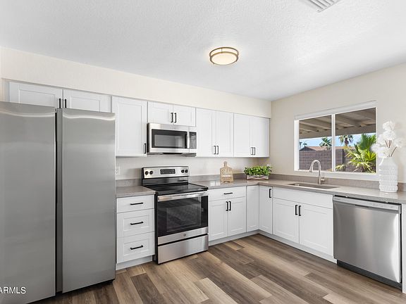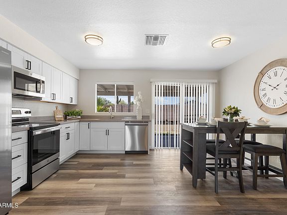REMODELED Phoenix home close to I-17 & Loop 101 3 Bedrooms and 2 bathrooms with 2 Car Garage. Remodel Kitchen w/ NEW White Shaker Cabinets, QUARTZ Countertops, Stainless Steel Appliances. NEW Paint Inside & Out * NEW Vinyl Plank Floor * NEW Bath Vanities w/ QUARTZ Countertops, NEW Toilets and Showers. NEW Blinds NEW Front Yard Landscaping * Covered Back Patio