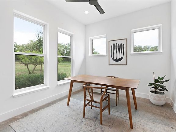 32164 Mirela Anne Rd. is situated on close to an acre and is a recently constructed Modern Eco-Farmhouse consisting of 4 bedrooms, 3.5 baths and a separate professional grade recording studio. Perfectly located in between downtown Dripping Springs and Bee Cave and with no adjoining neighbors and no HOA, this home offers ultimate privacy while still being accessible and connected. The main home lives like a single-level floor plan accented with a lofted yoga and workout space is just up the steps with a gorgeous, connected full bathroom. The primary suite is complete with dual closets, a double vanity, and a soaking tub and rainwater shower. The outside flows effortlessly into the interior, and polished concrete floors complemented by massive windows and sliders lead you to hundreds of feet of thoughtfully landscaped outdoor lounging and entertaining spaces. Just a few steps outside of the main home, you will find the recording studio, fully finished out by the sellers to the highest standards, even being utilized by esteemed local acts for recording their projects. This could easily remain as-is, or with an added bathroom be a spacious guest house. The home runs entirely on rainwater collection and is optimized throughout to be extremely energy efficient and eco-friendly, with all electric throughout, including an induction range, installed solar panels, EV charging, multi-zone optimized HVAC, and more. A very short drive from the Hill Country Galleria and all of the incredible new restaurants and entertainment including Fitzhugh Rd. breweries, distilleries & wineries, this home is for the most discerning buyers that are looking for their own special part of the hill country landscape.