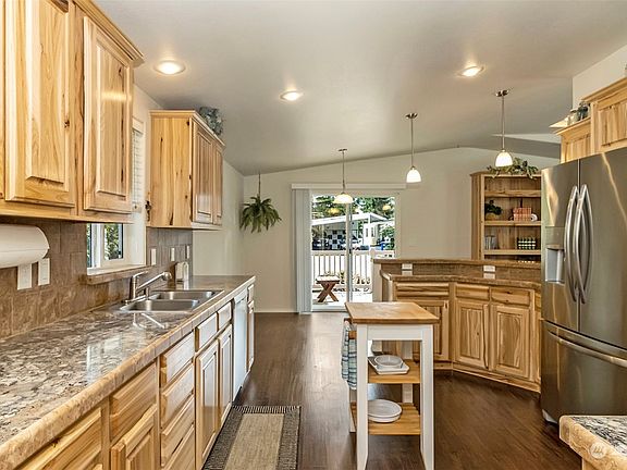 ~Welcome Home ~You own your land, no age restrictions, located in Cascade Vista, this community has a park, pool, sports court, & trails. It is super close to Starbucks, & Fred Meyers. ***LOCATED ON A PRIME LOT***. Northshore Schools, This custom home was built in 2019, it feels LIGHT & BRIGHT, Features: Hickory Cabinets through out, Vaulted ceilings, an OPEN FLOOR PLAN, Engineered Laminate flooring throughout, a covered outdoor deck, all new systems 2019, AIR CONDITIONING Efficient heating /cooling, private primary bedroom with a terrific bathroom, large tub that looks into the backyard, the kitchen has endless counterspace, an eating bar, soft closing drawers, loads of parking, Detached large garage with 220, & AN OUTDOOR OFFICE *