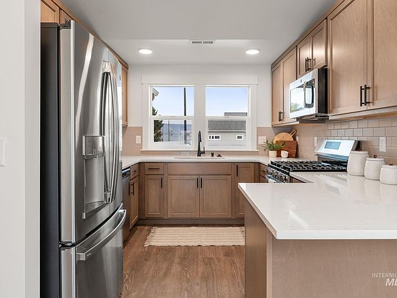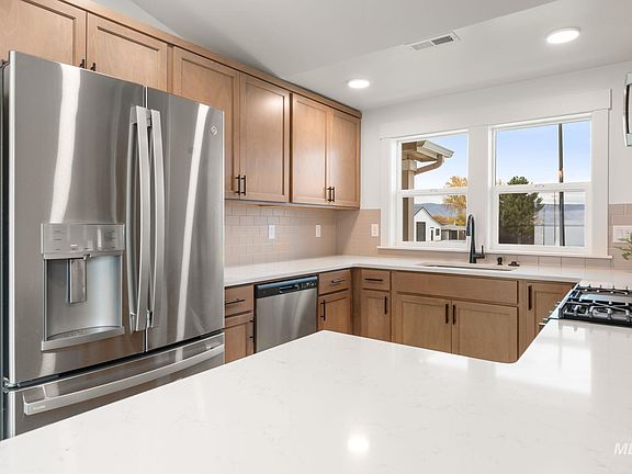 Tucked at the end of a quiet cul-de-sac in the Blackhawk subdivision, construction was just complete in mid November! Step inside to a bright, vaulted living area that seamlessly connects the kitchen, dining, & living spaces. The kitchen offers quartz counters, stainless steel appliances, & ample cabinetry, perfect for both everyday living & entertaining. A sliding glass door off the living room leads to a spacious concrete patio & fully fenced yard for easy outdoor enjoyment. The primary suite features a walk-in closet & an ensuite bath with dual vanities. Two additional bedrooms share a second full bath. A dedicated laundry room adds convenience, connecting to the oversized 3 car garage. Additional highlights include a gas fireplace, vinyl privacy fencing, full landscaping w/ sprinklers, RV parking & a 1 year builder warranty. Enjoy low maintenance living in a location that offers both tranquility & convenience.