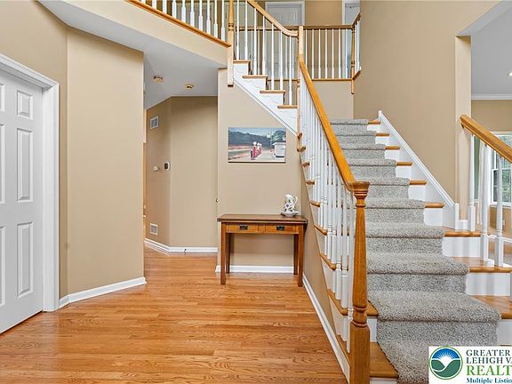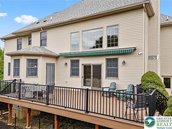 Stunning Blair Home in Valley Green – Southern Lehigh Schools. Nestled at the end of a cul-de-sac in the sought-after Valley Green subdivision, this beautiful home sits on over half an acre in Upper Saucon Township. Offering 4 bedrooms, 3½ baths, and a dedicated home office, this home is designed for comfort and versatility. Enjoy a fully finished walkout basement complete with a kitchenette and full bath—perfect for entertaining or multi-generational living. Two stairwells provide convenient access to the second floor, while dual basement stairwells offer flexibility and ease of movement throughout the home. Also featuring a new roof, new central air, new appliances, an EV charging outlet in the garage, gas fireplace in the living room, & a recently installed maintenance-free Trex deck with a retractable awning, making this home modern, functional and ideal for entertaining. Enjoy neighborhood amenities, including a private walking path leading to a children’s play area and the scenic Saucon Creek. Conveniently located near the Promenade Shops and Saucon Valley Country Club, this home combines suburban tranquility with convenient access to local amenities.