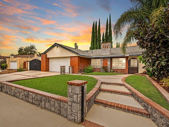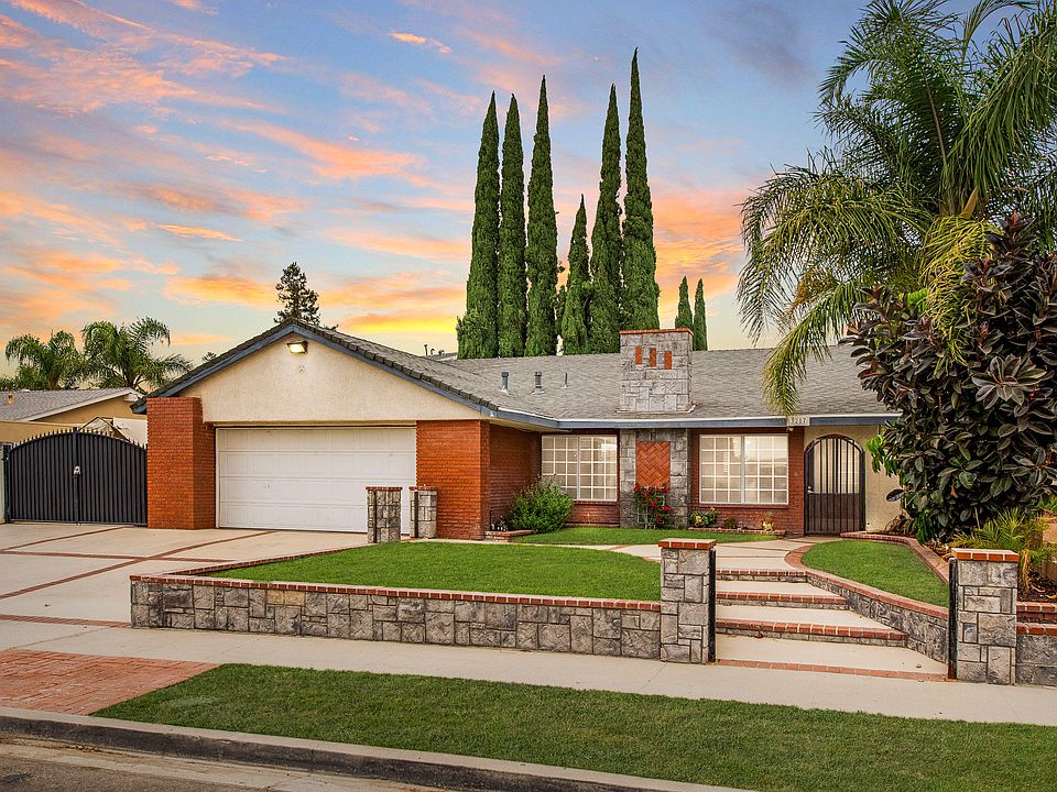 This is the home you have been waiting for! Sought after single story POOL home with RV access! Fantastic curb-appeal with brick ribbon accents, this beautiful home features 4 bedrooms, 2 bathrooms, and approx 1674 square feet of living space! The step-down living room offers a beautiful brick fireplace! The gourmet kitchen offers a breakfast bar, stainless steel appliances and granite counter tops! Ceiling fans in almost every room! The back yard is tropical paradise with palm trees, built-in BBQ, sparkling pool & spa, and SUNSET VIEWS!