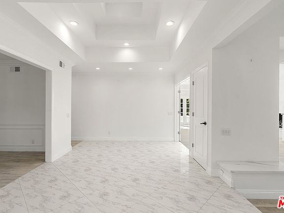This rare newly updated single story 5 bedroom Mediterranean style home sits on a rare flat lot. High ceilings in living room and updated kitchen and bathrooms. Huge master suite with dual bathrooms and generous walk-in closets. French doors open to sunny pool with spa, grassy area and sports court. 3 car garage. Close to private schools and Warner school district. Perfect family home.