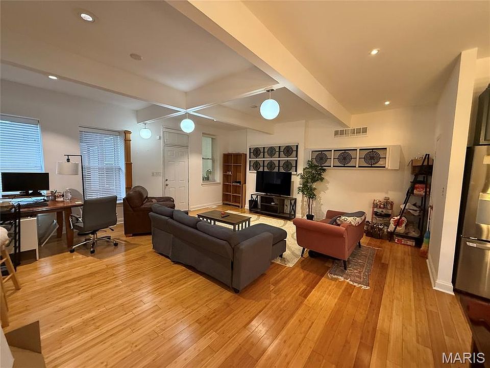 Price adjustment. Beautiful Lafayette Gem! This stunning 3-bedroom, 4-bath home seamlessly blends historic charm with modern updates. Soaring ceilings, exposed brick, original millwork, and gleaming bamboo hardwood floors highlight the home's character, while the updated kitchen features stainless steel appliances, custom cabinetry, and granite counters. The spacious primary suite offers a walk-in closet and a stylish ensuite bath. A finished third floor adds nearly 500 sq ft—ideal for a 4th bedroom, home office, or creative studio. Outside, enjoy a private fenced courtyard, rare two-car garage, and bonus mudroom with rear entry living potential. With generous square footage, multiple living spaces, and private bedroom areas, this property is also perfectly suited near St Louis University. Just blocks from Lafayette Park and minutes from the cortex and the medical campus, with easy access to downtown, Grand Center, and major highways—this home delivers exceptional flexibility in a prime city location. 3D Virtual tour, floorplans available. Price includes furniture excluding piano. Turn Key property ideal for multi city living.