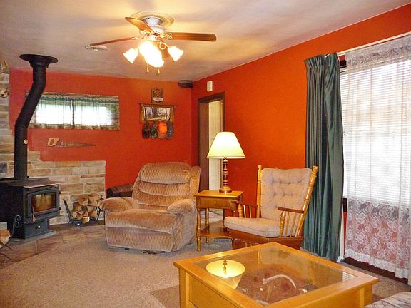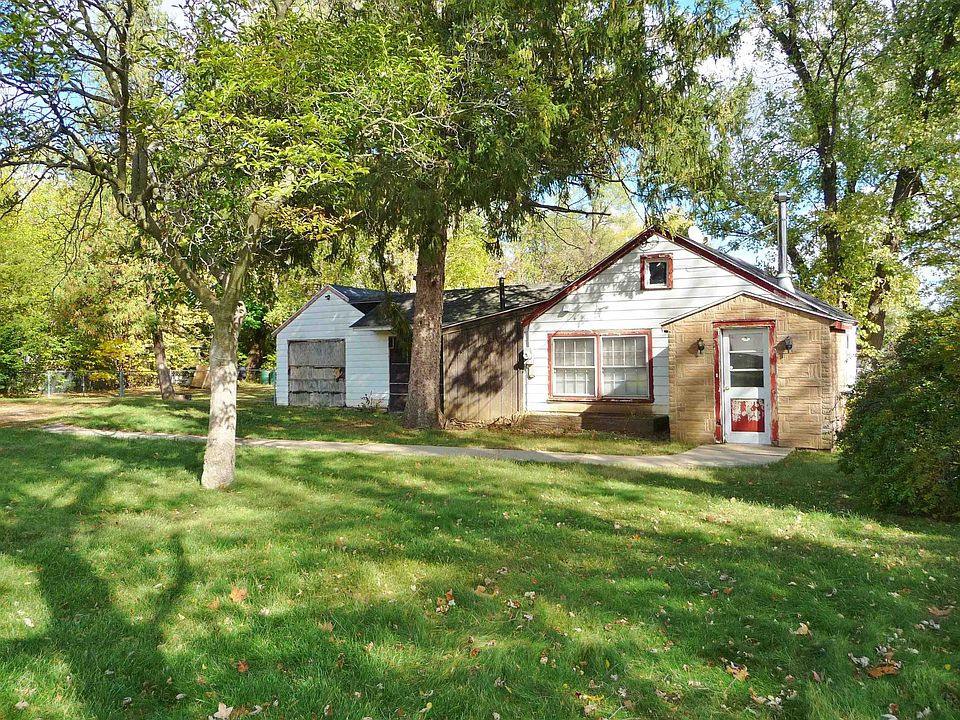 Wonderful potential with this two bedroom one bath home. The nice sized living room features a wood burning fireplace with a brick walled back drop. Perfect for heating the home on those warm winter days. The updated kitchen has knotty pine walls, Oak cabinets and plenty of countertop space for cooking. The bath has been updated with a newer cabinet, knotty pine walls and walk-in shower. Located on .88 acres with a large fenced in back yard with extra wide gates for extra storage or outbuildings. The attached garage has been transformed into a shop/shed but could be turned back into a garage. It has a circle driveway for easy access. New furnace in 2024. 100 amp service. County taxes. With some finishing touches home could be a great investment opportunity