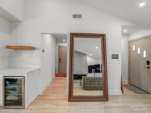 Modern lightingAbundant natural lightCustom bar areaWhite quartz countertopsWine fridgeVaulted ceilingsBeautifully appointed guest bathroom