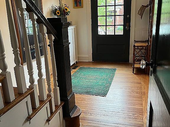 Privacy fenced rear yardSmaller trunk roomMaster bedrmBeautiful entrance wayLots of storage spaceEntrance to sun porchHw flrs