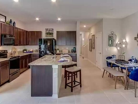 *Brand-new kitchen appliance package includes a smooth range, overhead microwave, and side-by-side refrigerator, 36" staggered cabinets,