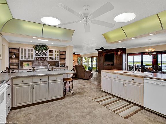 Surrounded by water on three sides of this incredible Lake Istokpoga home is nestled on 4.5 acres of unique waterfront! You have never seen anything like this! As you drive back the long driveway to the house - lined with grape vines, you will love the privacy this home boasts! 282 Ft of frontage on Lake Istokpoga in back of the house offers panoramic views of the water! 415 Ft of frontage on a deep canal on the left side of the house and an awesome private lagoon with dock and private cement boat ramp. On the right side of the house is a huge pond with fishing dock. The house sits at the far back of the property on the Lake - the front part of the acreage is cleared but lined with tall foliage for complete privacy. As if the property and waterfront was not enough to be in love with this place - just wait until you see the inside. Sprawling 4 Bedroom 2 Bath home boasting over 2800 square feet of living space. Gorgeous hardwood floors and tile. Huge kitchen offers tons of counter and cabinet space. Perfect kitchen for cooking and entertaining as there are 2 long breakfast bars. One overlooks a dining space and one overlooks a breakfast nook area that also features a lovely wet bar. In addition to overlook a dining area - it also overlooks the living room and has amazing views of the water! This space features lots of natural lighting with two skylights and TWO quadruple sliding doors on each end of this expansive room. The built in entertainment center also hides the vertical blinds when they are open. You would never know there are blinds on these sliders as they are "built in" and behind a cornice board. AWESOME!! There is another formal dining room (or could be used as a family room). Two over sized guest bedrooms and a remodeled full bath (with skylight) on one wing of the house. The master bedroom and granite on-suite is AMAZING and once again - you have resort style views of the lake! Large walk in closet for great storage. The master bath features an incredible walk in shower with rain head shower head and his and her sinks. The 4th bedroom is currently being used as an office. Indoor laundry room, crown molding, central vacuum, and attached 2 garage that features a electric skeeter beater screen door and extra insulation are just a few of the additional amenities this home offers. Outdoors you will notice the whole home generator - this is new within the last 4 months. The A/C on this home is only 2 years old. Security system and Jenn Air grill and sink on lanai - great outdoor kitchen space. There is also a detached 2 car garage AND a huge pole barn with concrete floors. There is an additional 1.05 acres available for purchase too!