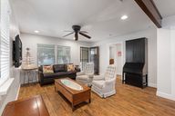 Custom cabinetrySpacious primary suiteHigh-end finishesOpen-concept floor planCustom built-insCovered back patioDurable trex decking