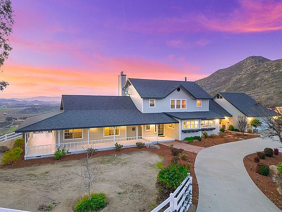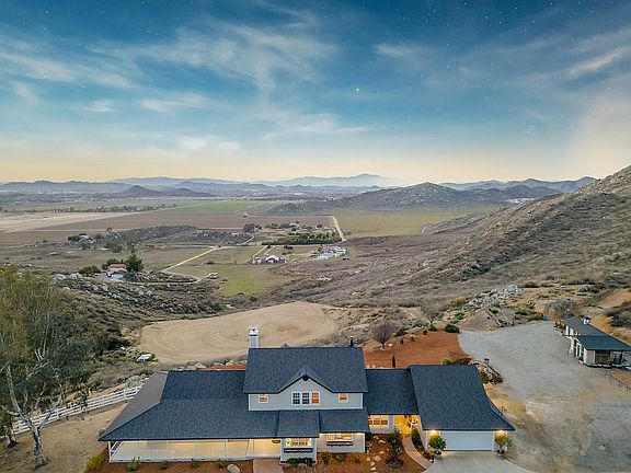 Coming Soon! If quality of life, luxury and serenity are important to you, then you have found the home of your dreams in this sprawling, ranch-style beauty in one of the most up-and-coming areas of Southern California! With 4 bedrooms and 3.5 baths on nearly 10 gorgeous acres, it’s the perfect place for an outdoor-loving family that values an active lifestyle, without sacrificing comfort or amenities. Boasting sweeping mountain, lake, and city-lights views, a fully renovated interior including kitchen and all bathrooms, and a plethora of coveted and unique features, you won’t want to miss the opportunity to tour this incredible home! Embrace country living on your ready-to-go horse property with corral area and horse pad, large chicken coop, stocked koi pond and plenty of room to park an RV, boat or both! Relax in the charm of your wraparound porch, or entertain in your outdoor kitchen with built-in Bull barbecue, food searer and sink. You’ll also love making memories around the gas fire pit with sitting wall and in your brand new Balboa spa. Gardening lovers will enjoy having a private orchard with mature fruit and avocado trees, as well as a raised vegetable garden and an inviting rose garden in front of the house. You won’t have to stress about energy costs while relishing all your home has to offer - the house comes equipped with 27 solar panels! The interior and exterior have been freshly painted, and interior highlights include a dedicated office space, dual A/C, custom built-ins, a solid copper farmhouse sink in the kitchen, engineered white oak wood flooring and granite countertops throughout. Inside you'll find wood burning stoves in the kitchen, living room, and master bedroom. The master suite has been modernized with a separate shower and jetted tub, dual glass sinks, and a walk-in closet. And don’t ever worry about privacy! Your tranquility is government protected—the land next door is Bureau of Land Management property, assuring nobody will be building there. Should you ever feel the need to leave, some of the area’s best outdoor recreation, shopping and entertainment, as well as the Temecula wineries, are just minutes away!