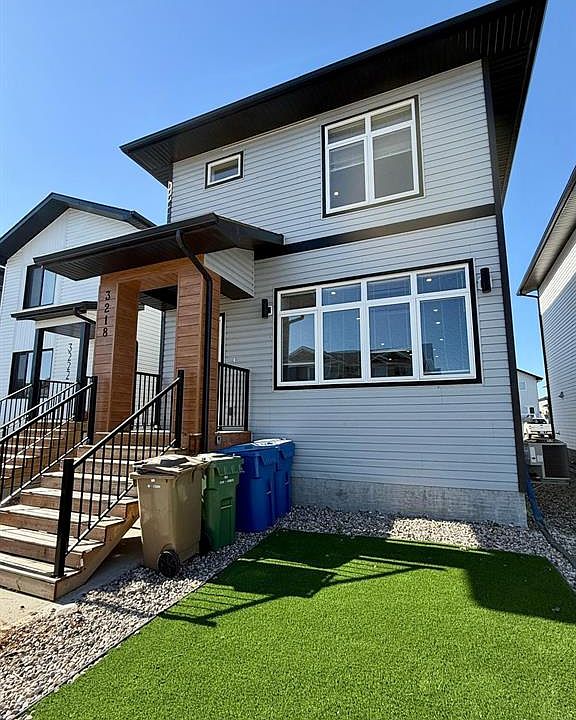 Welcome to 3218 Green Brook Road in The Towns, a beautifully finished 2-storey home with a fully developed regulation basement suite offering excellent income potential. Built in 2021, this 1,640 sq. ft. home is thoughtfully designed with modern finishes, functional space, and family-friendly appeal. The main floor features an open-concept layout with luxury vinyl plank flooring, a spacious living room with large front windows, and a bright dining area that flows seamlessly to the backyard. The kitchen is equipped with quartz countertops, stainless steel appliances, tile backsplash, and a generous island with seating—perfect for everyday living and entertaining. A convenient 2-pc bathroom completes this level. Upstairs, the primary suite includes a walk-in closet and 4-pc ensuite. Two additional bedrooms, a full bath, and a laundry room provide comfort and practicality for family life. The basement is a self-contained regulation suite with a separate entrance, making it ideal as a mortgage helper or extended family space. It features two bedrooms, a full kitchen with stainless steel appliances, a living room, and a 4-pc bath, all finished to the same high standard as the main home. Located in a growing east Regina community, close to schools, parks, and shopping, this home combines modern family living with the benefit of income-generating potential.