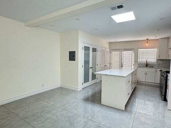 This charming single-story home blends classic character with modern comfort. It features 3 spacious bedrooms and 2 beautifully updated full bathrooms. Enjoy a fully remodeled interior, including a modern kitchen and bathrooms, along with brand-new tile flooring throughout for effortless maintenance. The inviting floor plan begins with a bright, open living room that flows seamlessly into the kitchen, creating a perfect space for both everyday living and entertaining.