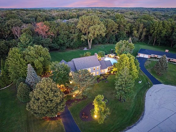 If serenity and solitude was a house, it would be 3218 Opengate Rd located in Crystal Lake! Situated on 1.5 acres of mature landscaping (professionally mulched 2025) and no neighbors behind, these original owners are sad to go! Spend evenings gathered around the fire-pit, shooting hoops in the driveway or dipping into the in-ground saltwater pool. With over seventy exterior lights illuminating the backyard, the lush beauty is impossible to miss. This yard has hosted two weddings with over 300 guests- perfect for any event. Spread out among the spacious three seasons room, TWO primary bedrooms, finished basement, office, etc! Cozy brick dual fireplace extends through the living and dining room. Scenic balcony overlooking the backyard off the first primary bedroom is ideal for cozying up with a cup of coffee or glass of wine. First floor laundry mud room with built in cabinets and back staircase leading to second floor for ultimate convenience. Take the opportunity to turn the main floor office into a first floor bedroom with a full bath across the hall. Recent upgrades include: Low maintenance compost decking (2019). Washer/dryer (2021), AC (2020), BOTH furnaces (2024), kitchen remodel (2019), Pool pump, circuit board, valves/filter (2024) Full pool redone in contemporary ECO-finish (2021), whole house screen and window washing (2025), Roof 2016.