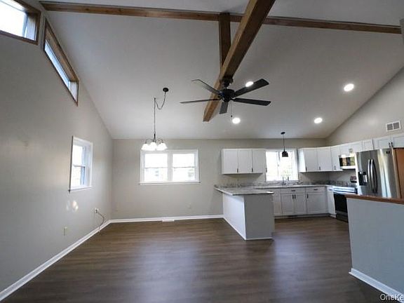 Central airHigh vaulted ceilingsGranite countertopsStainless-steel appliancesNewer kitchen