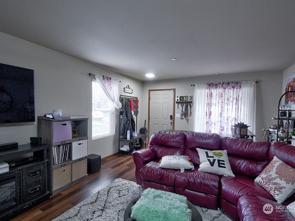 Absolutely beautiful 2334 sq foot home in the highly desirable NW Landing, Dupont, neighborhood. No expense was sparred in updating and caring for this home; a 75-year roof was installed in 2023, luxury vinyl plank flooring covers the downstairs and counter to cabinet tile backsplash. All 3 bedrooms are oversize with one of the guest bedrooms large enough to fit a king size bed with a walk-in closet. The fully fenced back yard is flanked on one side with a boulder, rock, wall and no neighbors to the rear of the property. The two-car garage is set back far enough to allow ample space for parking in the front. The Dupont community is very well maintained and has so much to offer as well as quick access to I-5 and JBLM.