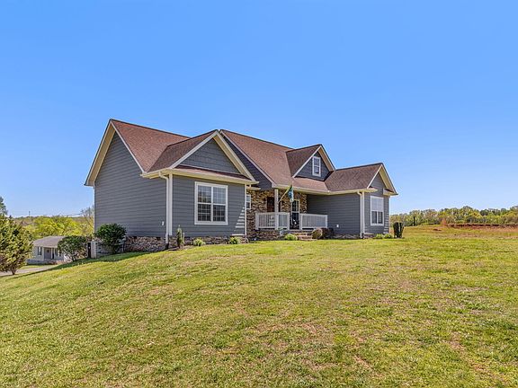 What a perfect combo! Seller just reduced price and is offering to assist the buyer in an interest rate reduction on their loan! Sitting on almost half of an acre, this custom home boasts a rocking chair front porch with beautiful mountain views. The home includes a covered deck as well. There are custom features throughout this well built home from the kitchen cherry cabinets to the tiled walk- in shower and separate whirlpool bath with his and her sink. Many built ins. Wait until you see the laundry room! The washer and dryer convey and have custom cabinet space for all your laundry and storage needs. This home does not lack for storage. Recently painted exterior and interior. All this and only 30 miles from Chattanooga!