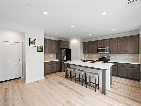 *Seller offering up to $15,000 in concessions to be used towards buyer's rate buy down or closing costs* Welcome to 32182 Penstemon Way – a beautifully upgraded, 2023-built home in the highly sought-after community of Sommers Bend, where luxury meets lifestyle just minutes from Temecula Valley Wine Country. This popular Medley Plan 1 showcases a thoughtfully designed layout with modern upgrades throughout, including luxury vinyl plank flooring, upgraded cabinetry, an oversized kitchen island, and a deep stainless steel sink. The open-concept kitchen flows seamlessly into the family room, anchored by a cozy fireplace - perfect for entertaining or relaxing evenings at home. Upstairs, you’ll find three generously sized bedrooms, two full bathrooms, and a convenient laundry room. The primary suite offers an upgraded spa-inspired super shower and dual vanities. Enjoy the peace of mind and savings of fully owned solar and professionally completed landscaping in both the front and backyard. The backyard features low-maintenance turf and a spacious patio - ideal for outdoor gatherings. A charming covered front porch invites you to enjoy morning coffee or the warm Temecula sunshine. Situated on one of the larger lots in Sommers Bend’s Medley collection and conveniently located near the resort-style amenities, you’ll have access to a stunning clubhouse, pool, spa, lap pool, fitness center, miles of scenic trails, and a 21-acre sports park designed for all ages. Located within the award-winning Temecula Unified School District and minutes from top-rated wineries, golf, shopping, and dining, this move-in-ready home offers the perfect balance of luxury, convenience, and community. Don’t miss your chance to own this better-than-new gem in one of Temecula’s premier master-planned communities!
