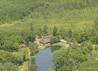Discover the perfect retreat with this Cedar Log Walkout Ranch, set on 40 private acres with a spring-fed pond teeming with fish and fresh, circulating water. A haven for nature lovers, the property is home to deer, turkey, and abundant birdlife.