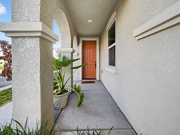 This charming two-story home welcomes you with a spacious covered front porch and an inviting open layout. The oversized great room flows seamlessly into the eat-in dining area—perfect for family gatherings and entertaining. The kitchen features rich mid-tone cabinetry, granite countertops, and stainless steel appliances. Upstairs, the private primary suite is thoughtfully separated from the secondary bedrooms, offering comfort and quiet. The spa-inspired primary bathroom includes an upgraded dual-sink vanity, walk-in shower, and relaxing soaking tub. Enjoy the best of gated community living with a private park just steps away!