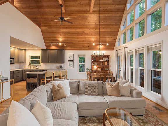 Sunlight pours through a wall of soaring windows in the great room, dancing across the hardwood floors and cathedral ceilings. The open layout connects seamlessly to the updated kitchen, where a spacious island and warm finishes invite everyone to gather. Step out onto the back deck to enjoy peaceful views of mature trees and the quiet rhythm of nature - a retreat that feels miles away, yet is just minutes from the heart of Chattanooga.