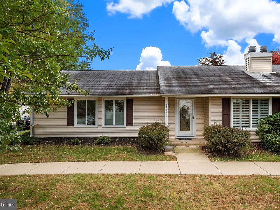 Welcome to Leisure World! This amenity rich senior living community has everything you could want and more. This lovely single level duplex ranch has just been repainted and is welcoming and fresh for you. The living room is spacious and is open to the kitchen and dining room, with hardwood flooring through this space. The dining room has access to the rear patio through a sliding door, to your own private garden space. The kitchen has been renovated and features a newer stainless steel refrigerator, granite counters, and custom wood cabinetry. The carpeted primary bedroom is large with an attached private bathroom and has plantation shutters for privacy. The en-suite bath has a tiled stall shower with glass doors and safety handrails, and a large vanity. There are two secondary bedrooms – both carpeted and perfect for guests, or even a home office – with a shared hall bathroom with a stall shower. This home has a newer HVAC and water heater (2019), and a full sized laundry suite tucked into a convenient closet.