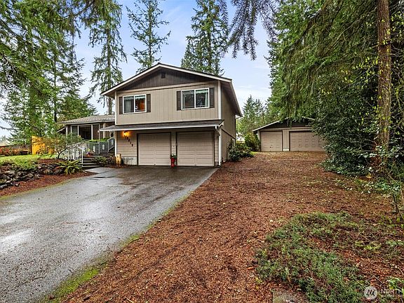 This spacious 3-bedroom, 2-bath tri-level home is nestled in a quiet Port Orchard cul-de-sac. The main level offers a seamless flow through the living and dining areas, leading out to a comfortable patio—perfect for entertaining. A huge lower-level family room provides extra space for relaxation or gatherings. The primary suite features a large walk-in closet and private bath. Furnace 97% high efficiency. A massive shop offers endless possibilities for your car collection, hobbies, or workspace. With newer flooring throughout, 2022 roof and a brand-new septic system with traffic rated tanks, this home is move-in ready and centrally located near shopping, dining, and amenities!