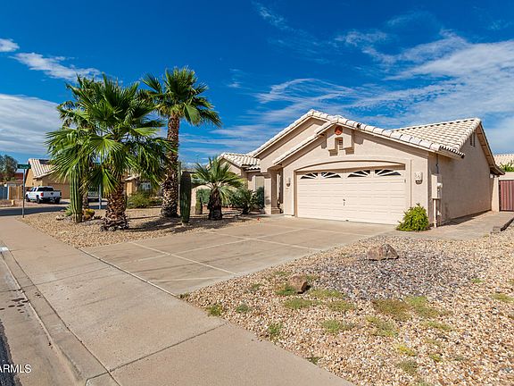 With easy access to the 202 & local grocery shopping, this could be a great home for any stage of your life! HOA-FREE! Roof replaced in 2022, covered screen-in patio, RV gate, concrete pad with electrical and sewer hook-up, tuff shed, and Safe Step Walk-in Tub in hallway bathroom with jets, heater and hand-held shower. Featuring a spacious split floorplan and large primary bedroom/bath with a large walk-in shower, this home is sure to please! A desert front yard and a paved backyard; low-maintenance plants. Be sure not to miss out!