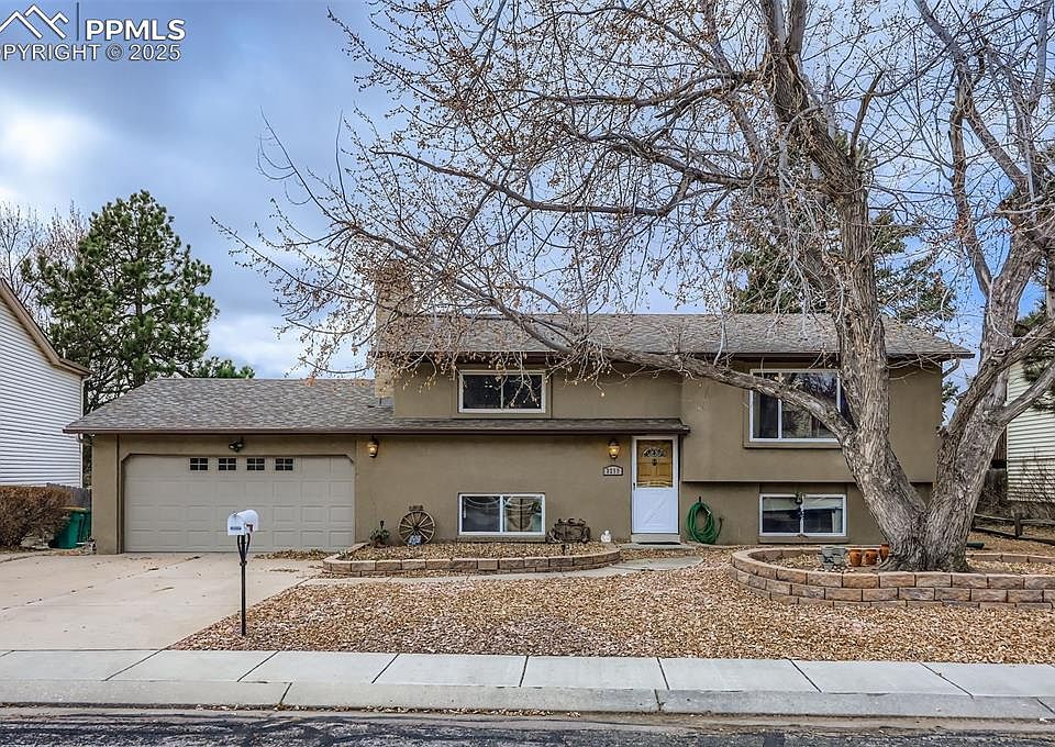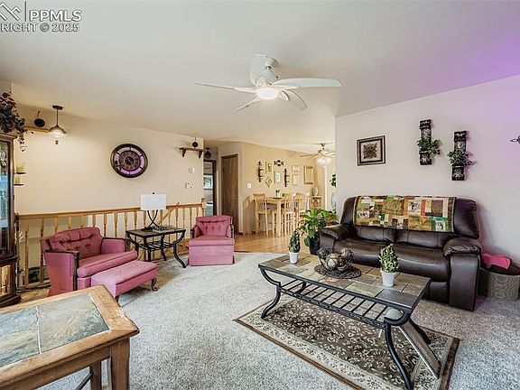 Welcome to this Lovely Bi-Level Home in the desirable Vista Grande Terrace Neighborhood ~ The Upper Level features an inviting Livingroom with abundant Natural Light from the large picture window ~ The Kitchen provides plenty of Cabinet & Counter space for your culinary convenience ~ You'll Love how the Dining room Walks-out to the huge composite deck showcasing the most Stunning views of Pikes Peak and the Front Range ~ The Primary Bedroom has been extended to provides enough space for your furnishings & a comfortable sitting area ~ Modern fixtures & updated walk-in shower in the upper level bathroom are delightful ~ Step into the Spacious Lower Level that offers a Family room including a warming & charming Brick Fireplace & Built-ins ~ This flows into more cozy space in the Den that Walks-out to the Spectacular Tiered Backyard ~ Whether your relaxing, gardening, playing yard games, entertaining or just taking in the beautiful view, you'll enjoy being here ~ 3 additional Bedrooms ~ Laundry space & 3/4 Bath complete the Lower Level ~ Keep your cars or stuff in the 2 Car Garage ~ Convenient Location with easy access to everything that Colorado Springs has to offer ~ Recreation & Lifestyle ~ Shopping ~ Food ~ Entertainment ~ Military Bases ~ Beautiful Parks & Scenery ~ Check it out ~ You're Going to Love It ~