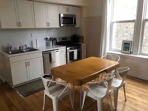 Beautiful and spacious 3BR/1BA second floor FURNISHED apartment in Little Village with tons of natural light. Located near the intersection of Cermak and Kedzie. Three blocks from the Kedzie pink line train station with direct access to downtown Chicago. Recently updated kitchen with stainless steel appliances including stove, microwave, refrigerator and DISHWASHER! Recently renovated bathroom! Hard wood floors! Central heat and air conditioning! Indoor porch space for storage included. The building has a side yard and outdoor space for tenants to enjoy in the back of the building. The unit is located on the second floor of the building.