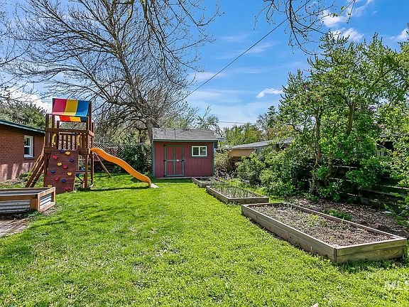 Adorable single level rancher nestled on the border of Boise's highly desirable North & Northwest areas at the base of the foothills, offering endless trails & quick access to top rated school, restaurants, greenbelt, & just blocks away from Sunset Park. Sitting on a secluded lot on a quiet street, this quaint abode offers a peaceful respite complete with a lovely backyard oasis including full fencing, mature trees, shrubs & flowers, & raised garden beds to enjoy from the patio. This charmer is bursting with character & bright, cheery colors, paired warmly with original hardwood flooring throughout & large picture windows allowing for abundant natural light. The flowing layout lives large & provides generous closet & built-in cabinet space, w/plenty of additional storage in the large shed & spacious attached garage. The kitchen includes stainless appliances (+W/D) & the adorable bathroom features midcentury tile pattern work. This is a fantastic opportunity to live in a dream location at an affordable price.