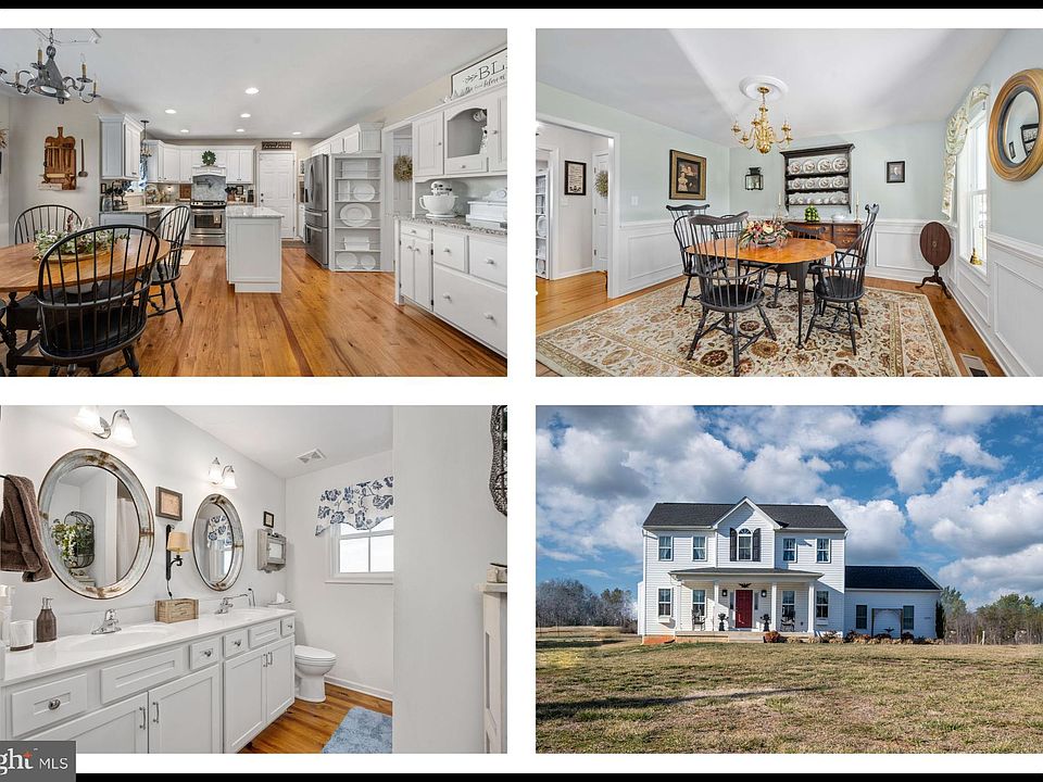 NEW PRICE! Seller has found her next home. Bring your horse and RV/camper! This meticulously kept farmhouse built in 2018 on two flat acres provides country living while still being close to shopping and dining in Fredericksburg! Don't miss a rare opportunity to own a home this pristine down to every little detail! Upon entering, you're greeted by an open two story foyer and stunning 4" heart of pine floors which are carried out through every room of this home. Flanked to the left is the formal living room with a gas fireplace surrounded by gorgeous molding. You won't want to wait for special occasions to use the the breath taking formal dining room that is as beautiful as the most exquisite bed and breakfast with its glistening chandelier, medallion, chair rail and detail molding. At the back of the home, you'll find an open living area with a family room, breakfast area, and kitchen. The gourmet kitchen is perfect for any chef- gas cooking, plenty of cabinet space in addition to a pantry, center island, and even a pot filler and marble backsplash behind the range. You won't want to miss the pass through between the kitchen and dining room...it's the perfect space for a butler's pantry or coffee bar. Great breakfast table space between the kitchen and family room which also provides access to the back concrete patio for outdoor dining. Upstairs you will find a very large primary bedroom with a pocket door to access the ensuite bath. This bathroom has a large counter height vanity with double sinks, shower stall, and a soaking tub with built in open shelving for a wonderful spa like atmosphere. Down the hall you will find two additional nicely sized bedrooms. The second upstairs bath also has counter height vanity with double sinks and a tub shower along with a pocket door to one of the bedrooms with access from the hallway, also. Tankless water heater supplies the whole house with hot water on demand. Property is zoned agricultural and per county horses and farm animals are allowed. In addition, there is electric, water, sewer hook up for an RV, camper. This exceptionally maintained home with a two car side load garage sits on two flat acres with a shed that is 30 feet deep and has two roll up bay doors. Up to 4 acres of additional acreage may be available behind the property. This is an amazing must see home that provides it all- buy farm fresh milk and ice cream or pick your strawberries and pumpkins just down the street at Miller Farm Market or shop and dine in all that Fredericksburg has to offer that is just a short drive away.