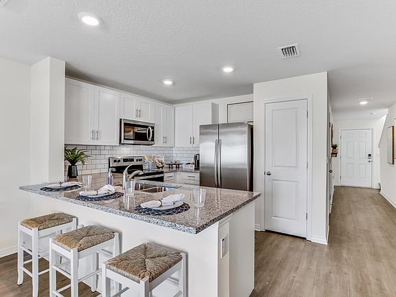 - Exterior features: , Brand New Spacious Floor Plans, Close to Tampa Int'l Airport, Concrete Block Construction on 1st and 2nd Stories, Fully Equipped Gourmet Kitchens w/Granite Counters, Hardwood-Style Flooring, LED Ceiling-Mounted Lights, On-Site Maintenance, On-Site Management, Package Receiving, Pest Prevention, Interior and Exterior, Sprinkler System, Stainless Steel Appliances, Stainless Steel Energy Efficient Appliances, Tile Backsplash, Two-Story 3-Bedroom Homes, Walk In Closet