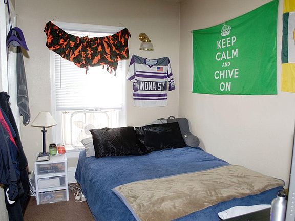 4 Bedroom upper 2 levels of duplex located 1/2 Block west of WSU. A large kitchen, 1 bathroom with shower, free washer/dryer in apartment, large living room with a connected 3 season porch, central air, large bedrooms, and off street parking. Separate individual locks on all bedrooms. Nonsmoking.
