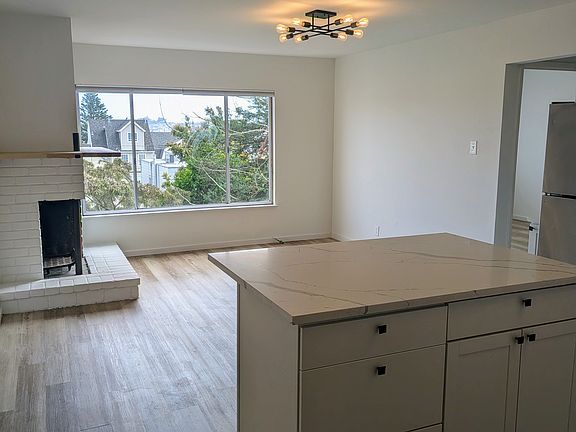 This light-filled, top-floor unit includes vinyl plank flooring throughout. The kitchen is equipped with quartz countertops, stainless steel appliances, and a garbage disposal. Please note that the fireplace is non-functional, and the burning of any materials is strictly prohibited. The back bedroom features a full-size closet with frosted glass sliding doors, while the front bedroom offers a small walk-in closet.The building provides an on-site washer and dryer for tenant use through the ShinePay app. The apartment is conveniently located near MUNI, various restaurants, coffee shops, and the Lincoln Park Golf Course.Additional Details:- Parking: One-car parking in a shared garage is included at no additional cost.- Utilities: Water and garbage services are paid by the owner; the tenant is responsible for PG&E.- Lease Term: A twelve (12) month minimum lease is required.- Security Deposit: A security deposit of $3,700 is due upon lease signing.- Application Process: Online rental screening is mandatory and paid for by all applicants intending to live in the unit.