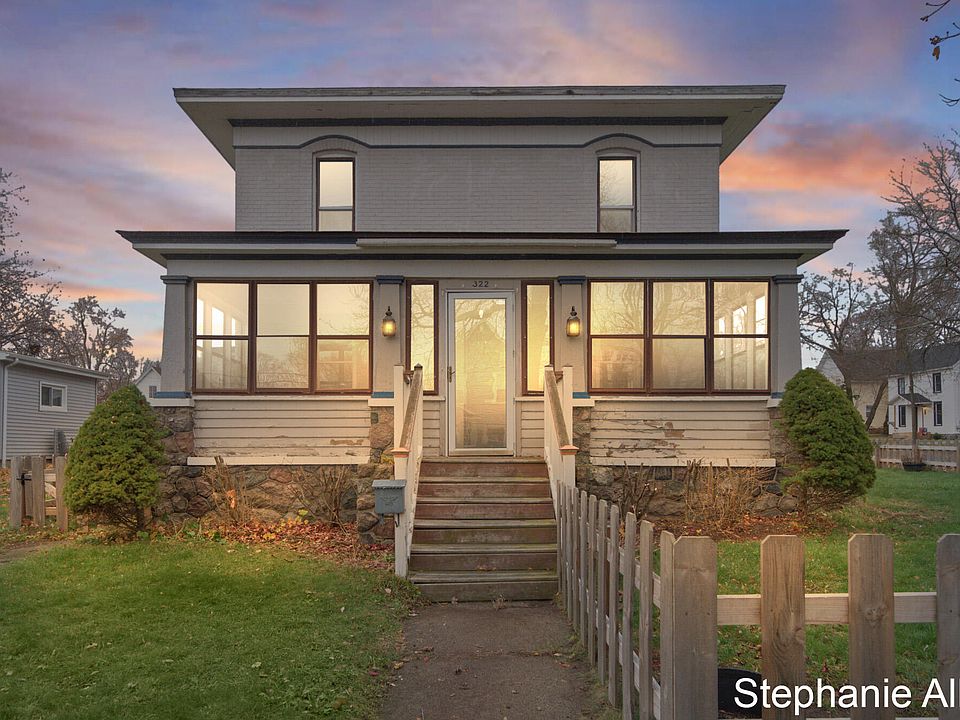 Discover this downtown Belding traditional home filled with historic character and charm. Situated on a corner lot with a newly fenced-in yard, this spacious home features 3 bedrooms, 2 full baths, and three 3-season porches. Raised ceilings throughout add a grand, open feel, complemented by a large kitchen and generous living spaces. Cozy up to the wood-burning fireplace in the library/living room. Updates include a new electrical panel in 2023, some new windows, and new flooring in the living room and main floor bathroom. Conveniently located near walkable favorites such as Horse's Mouth Tavern, Flat River Nutrition, and Bridge St. Cafe. Come experience all that Belding has to offer in this character-filled home.
