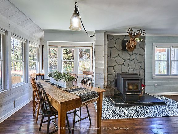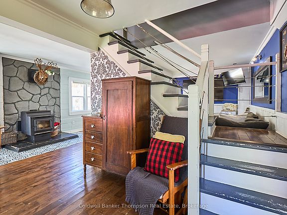 Tucked on a quiet road halfway between Bracebridge and Huntsville, this charming and cozy home offers a unique blend of comfort, creativity, and functionality. With its chalet-inspired design, warm wood heat, and airy sleeping lofts, it has a vibe all its own: welcoming, relaxed, and full of character. The bright interior features large windows that invite in natural light, a sunroom off the kitchen for morning coffee or plants, and a Juliette balcony off the primary loft, the perfect perch to enjoy the surrounding nature. A convenient covered mudroom entry keeps things practical year-round. Outside, the level, sun-filled lot offers endless potential for micro-homesteading with space for gardens, a chicken coop, and room to roam. The property includes handy outbuildings, carports, a drilled well, propane furnace, and a Generac generator for peace of mind. With nearby access to the Muskoka River, this property combines innovative style with everyday convenience, creating a cozy country retreat with just the right amount of edge.