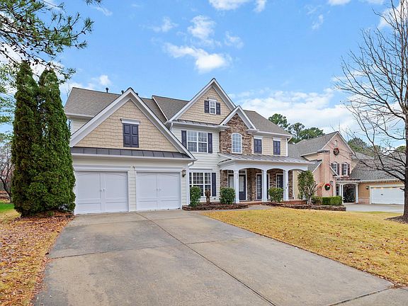 Stunning 5-bedroom, 4.5-bath home with extensive upgrades and thoughtful design throughout! Enjoy hardwood floors across the main living areas, including the staircase with elegant iron spindles. A main-level guest suite provides comfort and privacy with its own walk-in closet and a spacious bath featuring dual vanity, tiled walk-in shower & separate water closet. A dramatic two-story foyer welcomes you in, flanked by a dedicated office/formal living room with French doors and crown molding & a formal dining room with a tray ceiling, chair rail, wainscoting & a convenient butler's pantry! The living room offers a wall of windows and a beautiful double-sided gas fireplace that also warms the expansive kitchen and breakfast/lounge area. The gourmet kitchen features an oversized island with granite counters and breakfast bar, stainless steel appliances, gas cooktop with range hood, wall ovens & plenty of workspace! A main-floor laundry room with utility sink and storage, plus a nearby half bath, add everyday convenience. Upstairs, brand-new carpet enhances the entire level! The private primary suite is set apart from the secondary bedrooms and showcases a tray ceiling, crown molding & a bath with separate his-and-hers vanities, abundant storage, soaking tub, walk-in shower & an oversized walk-in closet. Two secondary bedrooms share a Jack & Jill bath with dual vanity, while another bedroom enjoys its own ensuite bath and walk-in closet! Outdoor living is just as impressive with a charming paver patio and tiered landscaping—perfect for entertaining or quiet relaxation! Meet your neighbors at the community pool or just a short drive to Waverly Place, Fred G Bond Metro Park, Lake Crabtree County Park and tons of other shopping and entertainment opportunities to explore! In addition, our preferred lender is offering up to 1% in lender credit, which can be applied toward closing costs or to help reduce the interest rate.