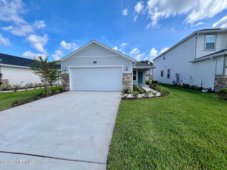 This READY NOW home showcases 4 bedrooms, 2 bath and a 2 car garage.Inside, discover an open floor plan with luxury vinyl plank flooring, volume ceilings and a spacious great room. The modern kitchen boasts Woodmont® cabinets, a wet island and Whirlpool® stainless steel appliances. Relax in the primary suite, which features a walk-in closet and connecting bath that offers quartz countertops, a dual-sink vanity. Other highlights include a den, ENERGY STAR® certified lighting, Moen® faucets, and Kohler® sinks. Enjoy the outdoors on the covered back patio. KB Home at Stonecrest is conveniently located in coveted St Johns County near multiple hospitals including Baptist South, shopping at the Pavilion at Durbin Park and is also close to Nocatee and Ponte Vedra Beach. Don't forget about the highly rated schools! Community amenities include a brand-new pool and playground with NO CDD FEES! Closing Cost Contribution available for this home