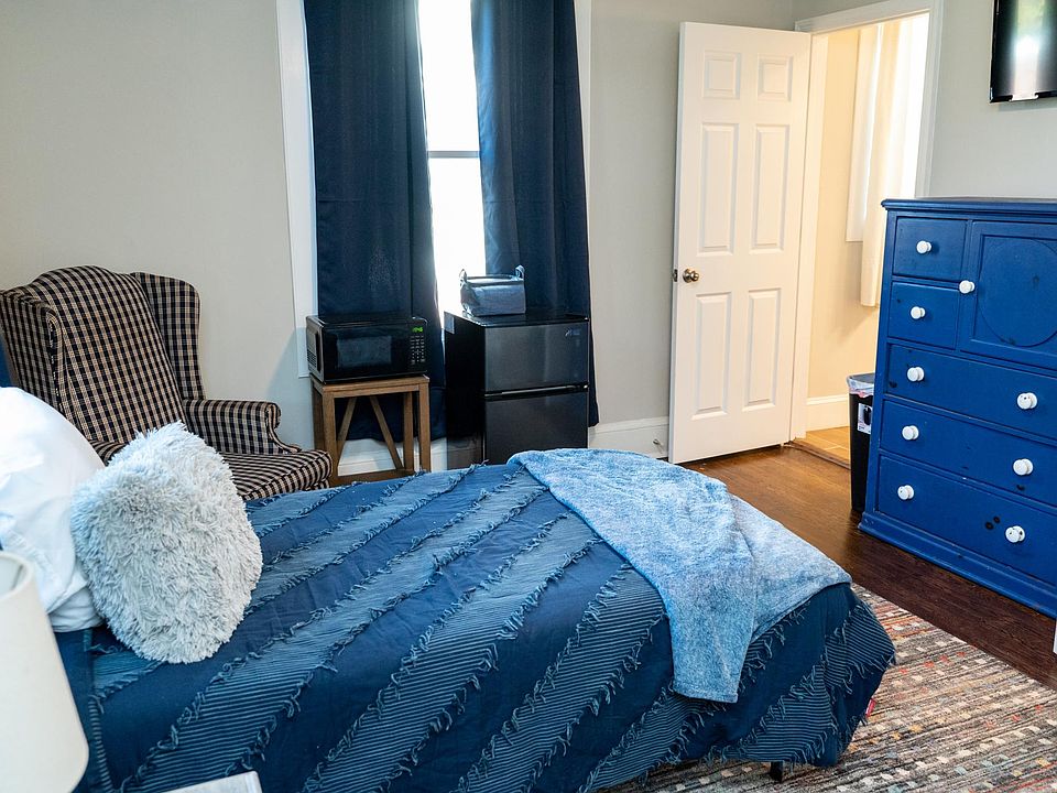 Unit 1 is a 1b/1b that is fully furnished with a private bathroom, bed, Roku Smart TV, dresser, mini fridge, MW and its own mini split for heating and A/C. Communal living gives individuals the opportunity to meet new people and create friendships by creating an environment where people live together sharing amenities such as kitchen areas, laundry areas, and some share a bathroom, but all have their own locked bedroom space, similar to college living. Located near downtown Statesville, each room comes fully furnished (pillows, sheets, towels & comforters not included) Home Service Package We Handle It, You Enjoy It -$200/month - This includes amenities, internet, pest control, lawn maintenance, appliances, furniture, and trash removal making your move-in experience seamless and stress-free.