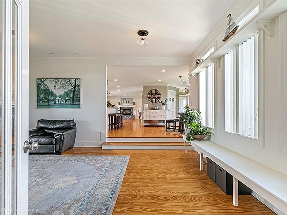 Glorious sunset views of Narragansett Bay from this custom built contemporary Cape style home, overlooking a beautiful backyard with stone walls. With a comfortable yet elegant coastal vibe, the designer features are endless in this sprawling home. Custom features include built-in benches and shelving, coffered ceilings & shiplap…you’ll appreciate the thoughtful finishes throughout. The main level has a generous mudroom entry and sitting area that flows into a gorgeous family room, with tall windows to capture the magnificent westerly skyline. The open concept chef’s kitchen, dining and living area offer the perfect floor plan for entertaining. Upstairs you’ll find the primary bedroom suite with vaulted ceilings, deck, a large walk-in closet and dressing area. The ensuite spa-like bathroom with custom tile shower, soaking tub + double vanity has radiant heat flooring to keep you warm. There are 2 additional bedrooms w/ high ceilings + bathroom & Laundry. Bonus Room with separate entrance has a wet bar, large closet + full bathroom, offering so many possibilities for the savvy buyer. Full basement with interior and exterior access houses a Finlandia Sauna! Gas heat, Central AC + 2 car garage round out this dreamy property. Easy access on and off Aquidneck Island from this convenient location, minutes to downtown Bristol, Roger Williams & the Naval base.