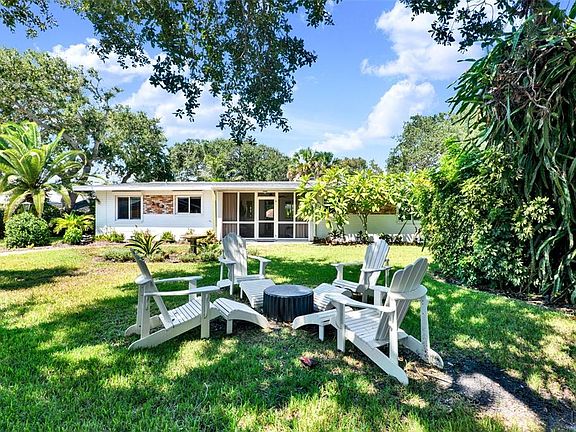 Beachside mid-century retreat with SALTWATER POOL just 3 short BLOCKS from FLAGLER Avenue! *** NO FLOODING - flood insurance is NOT required for this property! *** Step into timeless style and coastal comfort with this beautifully designed 3-bedroom, 2-bath MID-CENTURY inspired home, just steps from the sands of New Smyrna Beach. Situated on an oversized CORNER lot (.21 of an acre) with a FENCED backyard, this beachside retreat blends modern updates with classic charm, offering the perfect balance of relaxation and convenience. Inside, the open concept living space is filled with natural light, PLANTATION SHUTTERS, restored TERRAZZO floors, custom doors with glass knobs, a stunning accent wall in the dining area, and a wood burning fireplace with storage for the firewood. The primary suite is located on the opposite side of the home away from the spare bedrooms, and features two closets with sliding doors, a linen closet for added storage, and a vintage styled bath. The two additional bedrooms include spacious closets and multiple windows, drawing in the outdoors. The kitchen overlooks the front yard and patio, and is enhanced with QUARTZ counters, a refrigerator (2021), oven, cooktop, and BOSCH dishwasher (2021). Enjoy panoramic views of your private oasis from the main living area of the home. A sparkling saltwater HEATED POOL (added in 2023) with TRAVERTINE decking is surrounded by tropical landscape, outdoor lighting, and generous lounge areas—perfect for entertaining or soaking up the Florida sunshine. The area is also enhanced with top-of-the-line TRUE appliances, including an ice machine, kegerator, and mini-fridge. When you arrive home from the beach, enjoy showering off in your very own OUTDOOR SHOWER, then head to the pool for a dip! A screened-in front porch welcomes you as you enter the home, giving you endless opportunities to entertain on either side of the house. The oversized garage (~21 X 22 + storage closets) provides ample space for a vehicle, golf cart and beach gear, and includes storage closets, making everyday living easy and functional. The laundry room (~9 X 11) is adjacent to the garage and includes additional closet space. If you’re looking to EXPAND the living area, the garage would be the perfect place to renovate given the size of the yard and various places to park. UPDATES: backyard oasis with pool and True appliances (2023), AC (2020), small flat roof (2024), shingle roof (2017), electrical (2017), custom doors, irrigation, landscape lighting in the front and back yard, outdoor shower decking. Additional features: whole house HURRICANE SHUTTERS, concrete BLOCK home, brick accent wall. With its prime location, you’ll enjoy easy access to New Smyrna’s vibrant shopping, dining, and entertainment scene, all just minutes away (Flagler Avenue: ~ 3-minute walk * BEACH: ~ 8-minute walk * The Garlic/Norwoods: ~ 12-minute walk). Cruise on your GOLF CART or stroll the streets, NSB is the place to be! Nearby, you can enjoy climbing the Ponce Inlet Lighthouse, playing at the dog beach, strolling the non-driving section of the beach, or exploring the Canaveral National Seashore. Whether you’re seeking a full-time residence, vacation getaway, or investment property, this home offers the best of Florida living in a coveted beachside setting. Schedule a showing today and make this MID-CENTURY retreat your own!