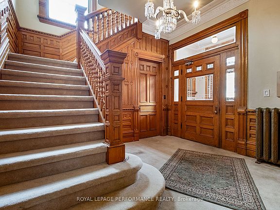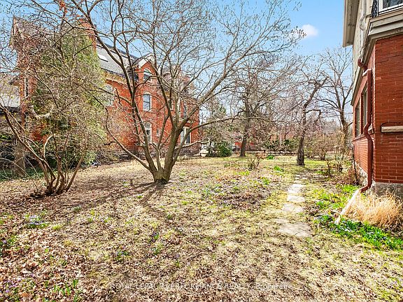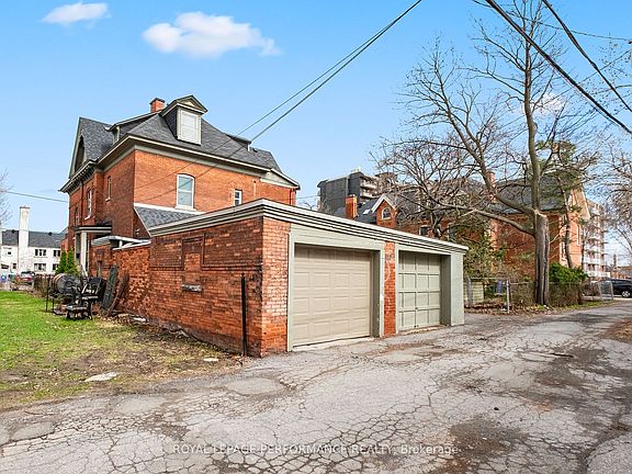 Magnificent, stately 5,500 square foot Victorian style, all brick, 3 storey Triplex which includes a separate 52 x 116 foot vacant development lot. Both the home and the lot back onto a City rear laneway with access to the detached double brick garage plus outside parking spot. R4UB[480] zoning allows many specific uses, diplomatic mission, business uses, and various types of multi residential buildings/apartments. Ideal for a family home as well. Total lot size is 105 x 116 feet which is already severed into 2 parcels. The spacious 2,159 sqft ground floor apartment offers a large entrance vestibule with wide oak staircase leading to the second floor. From the pictures, note the large rms and unique intricate features along with the rich woodwork , high ceilings with unique crown mouldings. The front bright , LR has a fireplace, opens to a large dining room giving way to accessing the family room, the eating area with access to the covered deck, and galley kitchen with a laundry area and secondary stairs to the basement, access to the rear yard and double garage. By the main entrance to the apt there is a bedroom or den with FP, down the hall is another bedroom plus 4-piece bathroom. From the hall you also have access to the finished recreation room in the basement with two separate bathrooms, another laundry room , storage rooms, along with the utility rooms. The second floor is accessed from the main entrance or the separate side door entrance accessing the third floor as well. Large 2,065 sqft , 2 bedroom apt with separate LR, DR, Family room, eat-in kitchen, laundry hook ups, and a four piece bathroom. The 1,276 sqft third floor has 2 bedrooms, a four piece bathroom, separate kitchen and large living and dining rooms. All apartments are currently vacant. The home is being sold "as is, where is" . Ideal opportunity for builders/developers, investors, or retain this grand home for family living as it's current use with a large landscaped garden area.