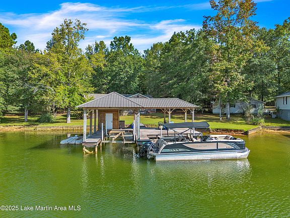 Discover the perfect Lake Martin retreat in this single-level cabin featuring 3 bedrooms and 2 baths. Offered mostly furnished, true lake cabin is designed for easy lake living. Enjoy seamless indoor-outdoor entertaining on the spacious back deck, ideal for gatherings, grilling and enjoying panoramic water views. Sitting on a highly desirable expansive and FLAT LOT, this property boasts over 200 feet of waterfront. A true highlight is the spacious pier, complete with a covered boat slip with lift, storage, and plenty of room to have fun! Great Location on Lake Martin: by water you are just short minutes to Smith's Marina, Willow Point and The Landing at Parker Creek. There's plenty of parking for guests .New Roof and plumbing lines in '23, New HVAC '20