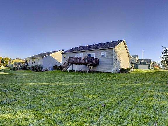 Step inside and fall in love with this beautifully designed home that blends comfort, style, and functionality. The open floor plan flows effortlessly through the Great Room, highlighted by a striking tray ceiling and large windows that fill the space with natural light. The kitchen is a true centerpiece with custom maple cabinetry, tile backsplash, solid-surface countertops, and stainless-steel appliances, ideal for everyday living or entertaining. Enjoy the convenience of main-level laundry and thoughtful design details throughout. The finished lower level adds a spacious rec room, comfortable fourth bedroom, and full bath, perfect for guests, a home office, or a private retreat. Impeccably maintained and move-in ready, this home offers warmth, quality, and modern design.